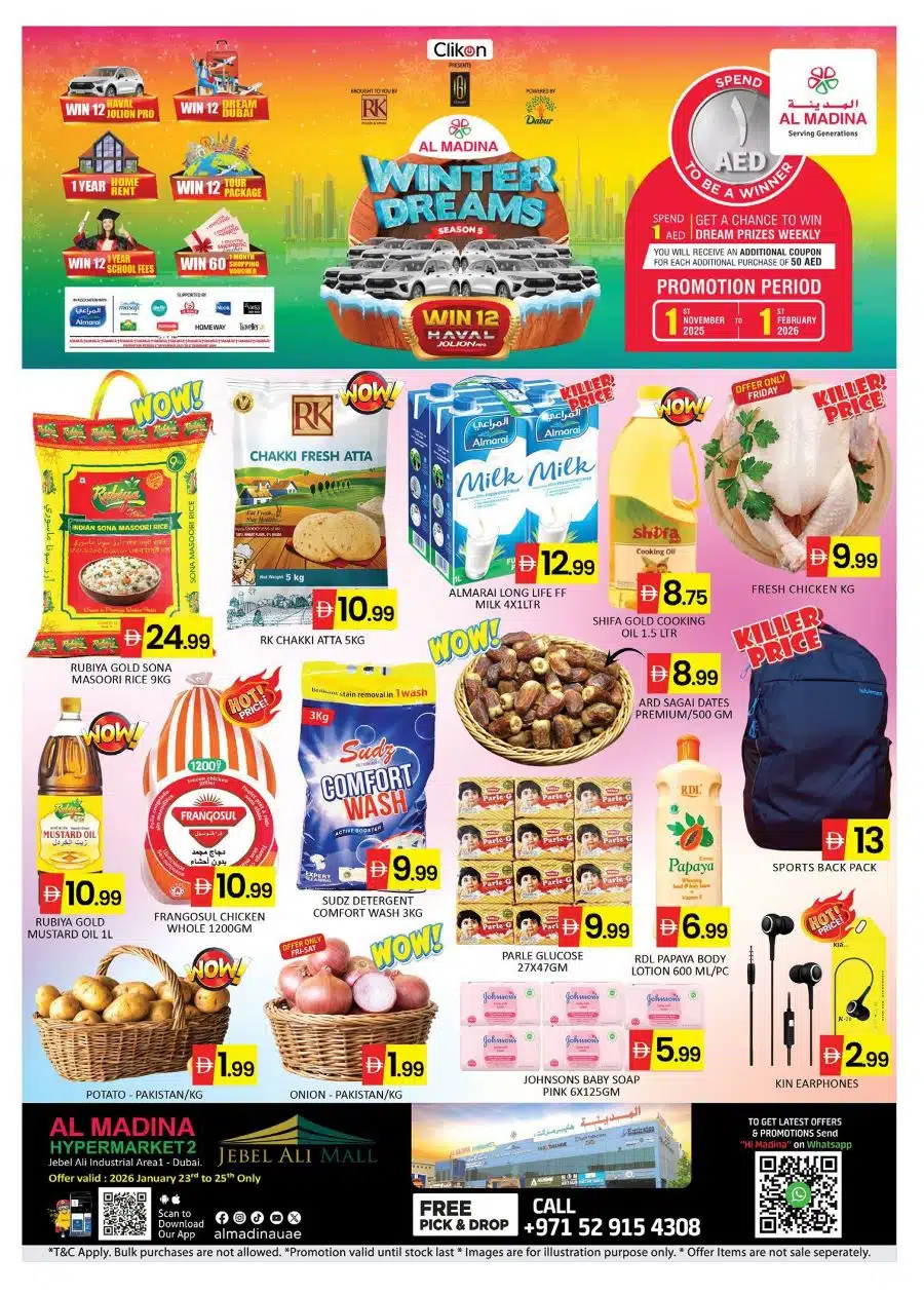 View the latest Al Madina Jebel Ali Promotional leaflet valid from 23 Jan – 25 Jan 2026.