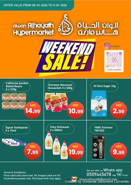 View the latest Alwan Al Hayath Promotional leaflet valid from 08 -11 Jan 2026 More about Alwan Al Hayath Supermarket UAE- Location & Details Follow our Channels