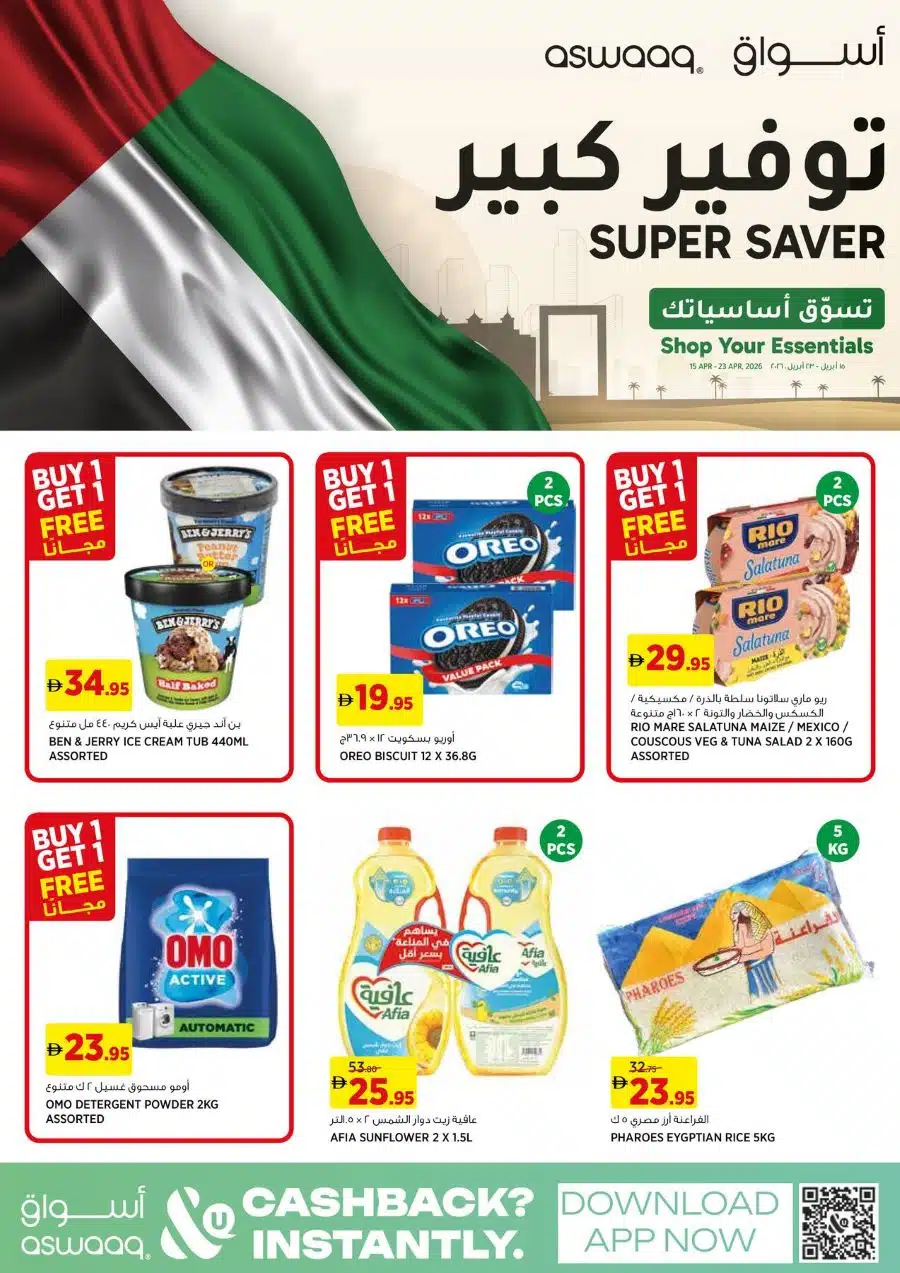 View the latest Aswaaq Offers ; Super Saver Promotion leaflet, valid from 15 Apr – 23 Apr 2026 Aswaaq Catalog – Best Weekly Savings ↑ Click to Browse Catalog More about Aswaaq UAE – Location & Details View Similar Leaflets Lulu Hypermarket Day to Day Shaklan Market United Hypermarket Follow our Channels WhatsApp Telegram Facebook Instagram