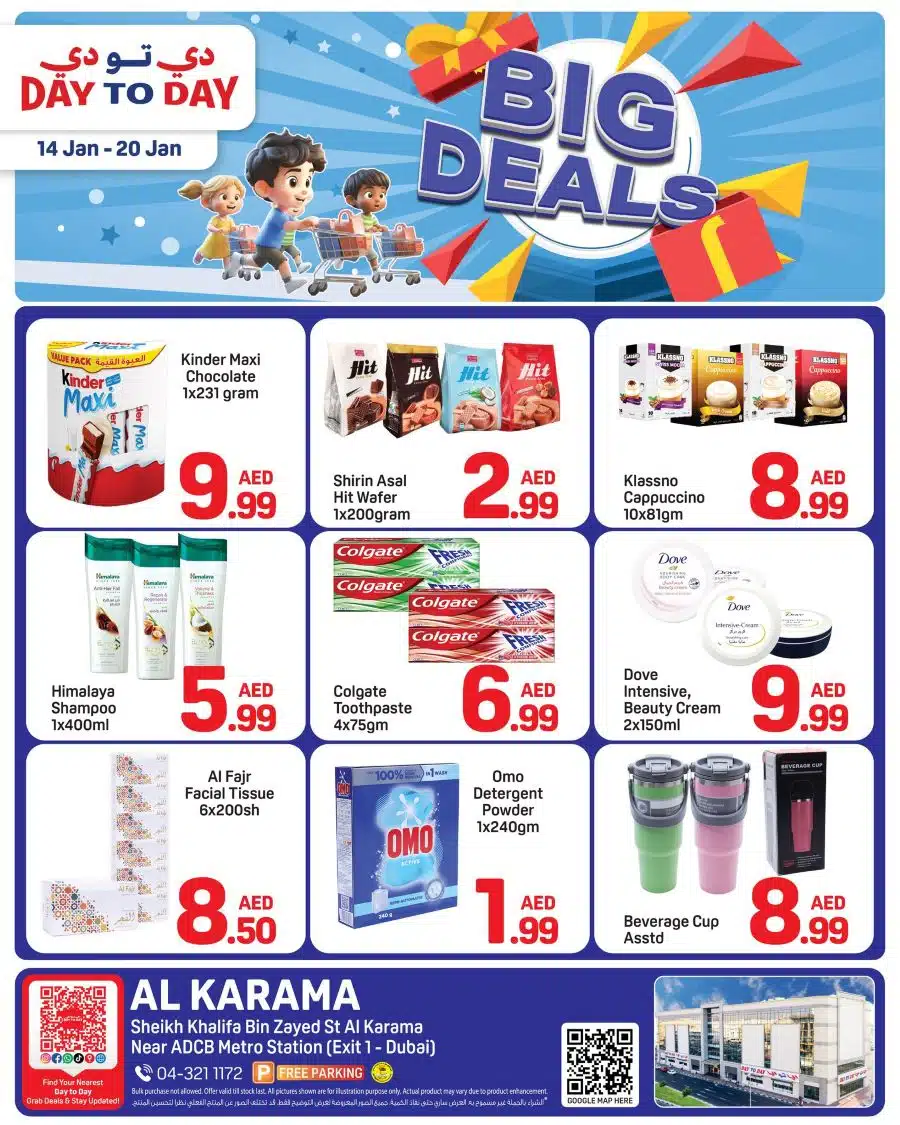 View the latest Day To Day Karama Hypermarket Promotional leaflet valid from 14 Jan – 20 Jan 2026.