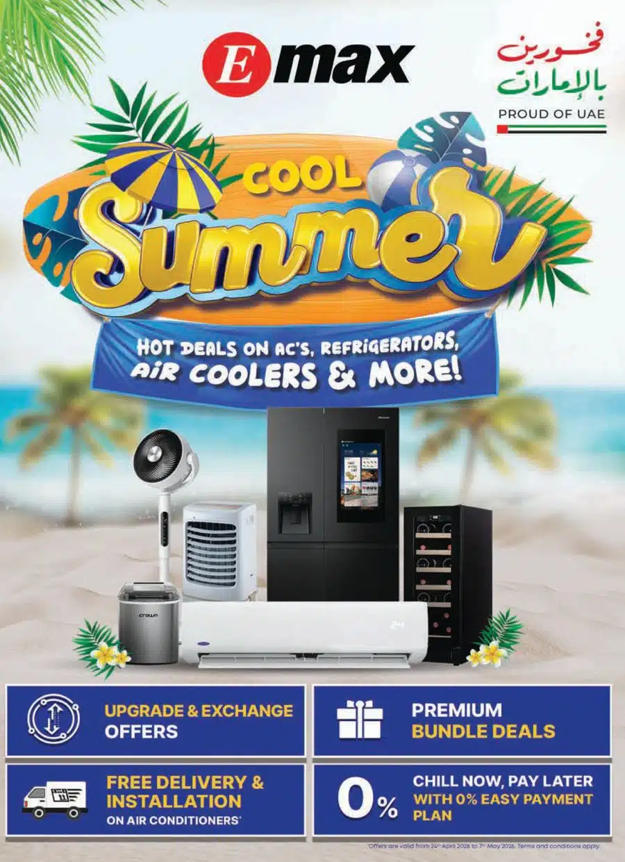 View the latest Emax across UAE Promotional leaflet valid from 24 April – 07 May 2026. Emax Catalog – Best Electronics offers ↑ Click to Browse Catalog More about Emax UAE – Location & Details View Similar Leaflets Sharaf DG Jumbo Electronics ECity Eros Digital Home Follow our Channels WhatsApp Telegram Facebook Instagram