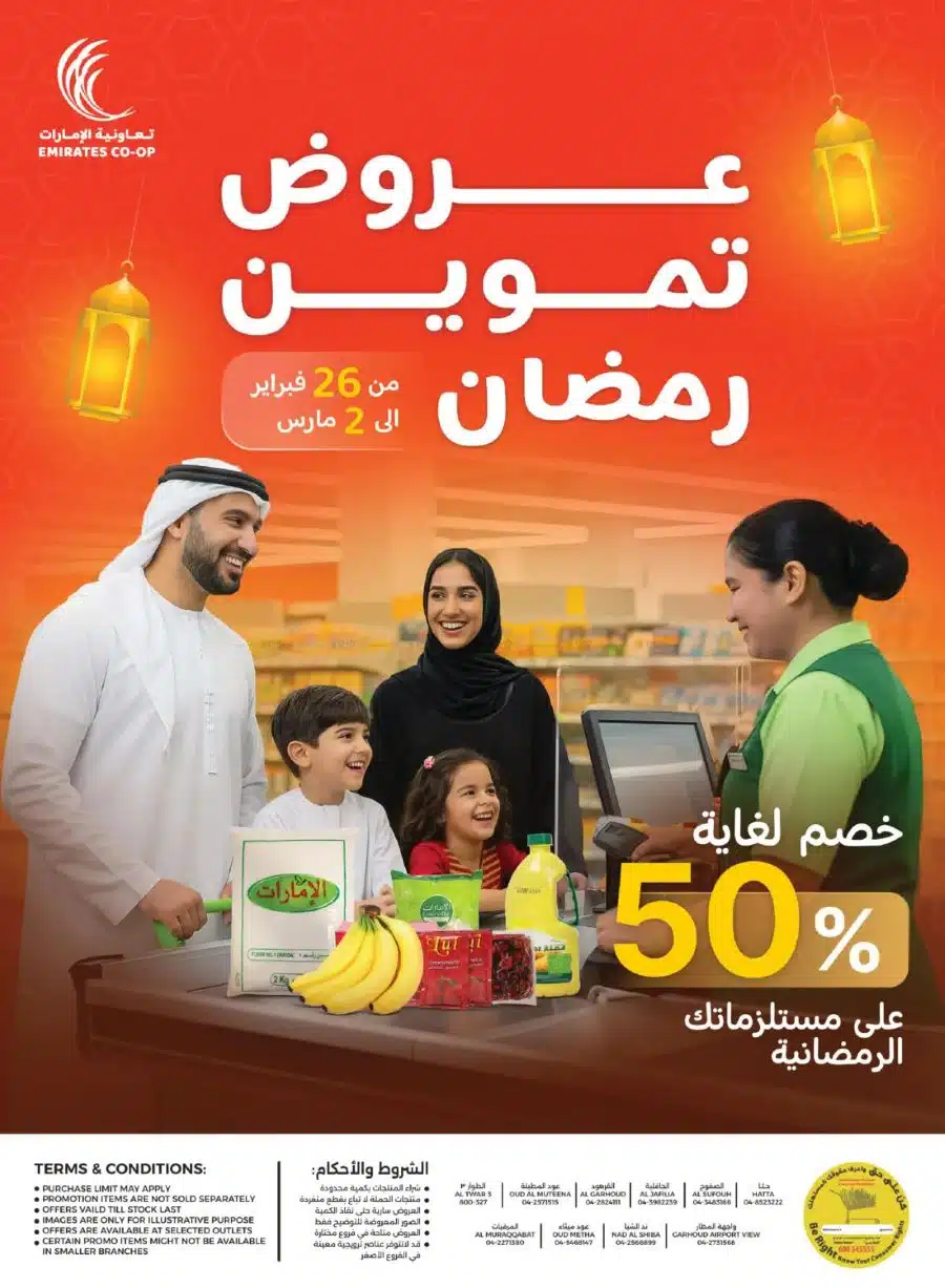View the latest Emirates Coop offers ; Ramadan Stock-up Promotional leaflet, valid from 26 Feb – 02 Mar 2026. Emirates Coop Catalog – Best Weekly Savings ↑ Click to Browse Catalog More about Emirates Coop UAE – Location & Details View Similar Leaflets Lulu Hypermarket Day to Day Shaklan Market United Hypermarket Follow our Channels WhatsApp Telegram Facebook Instagram