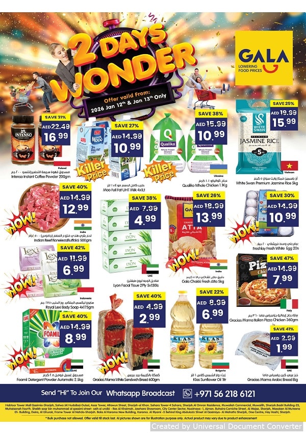 View the latest Gala Supermarkets Promotional leaflet valid from 12 Jan – 13 Jan 2026. More about Gala Supermarket UAE – Location & Details Follow our Channels
