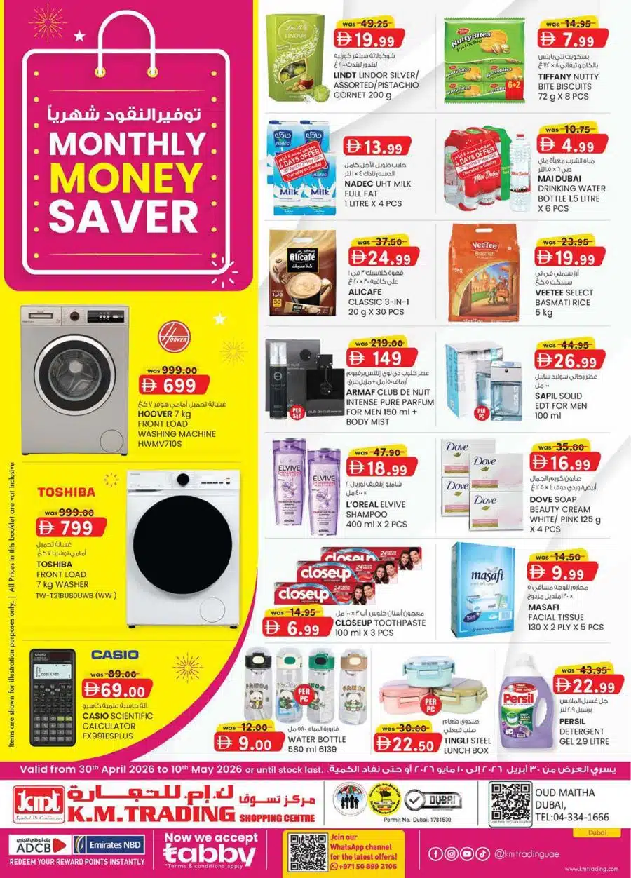 View the latest KM Trading Dubai offers ; Monthly Money Savers, from 30 April – 10 May 2026