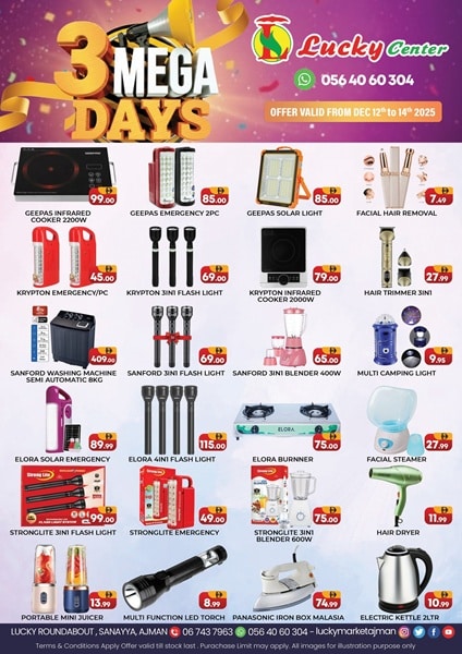View the latest Lucky Center Ajman Promotional leaflet valid from 12th Dec -14th Dec 2025 More about Lucky Center UAE – Location & Details
