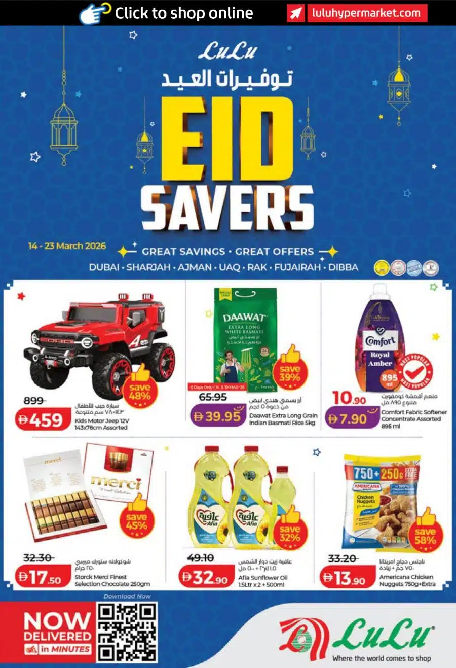 View the latest Lulu Ajman Offers ; Eid Savers Promotional leaflet, valid from 14 Mar – 23 Mar 2026.