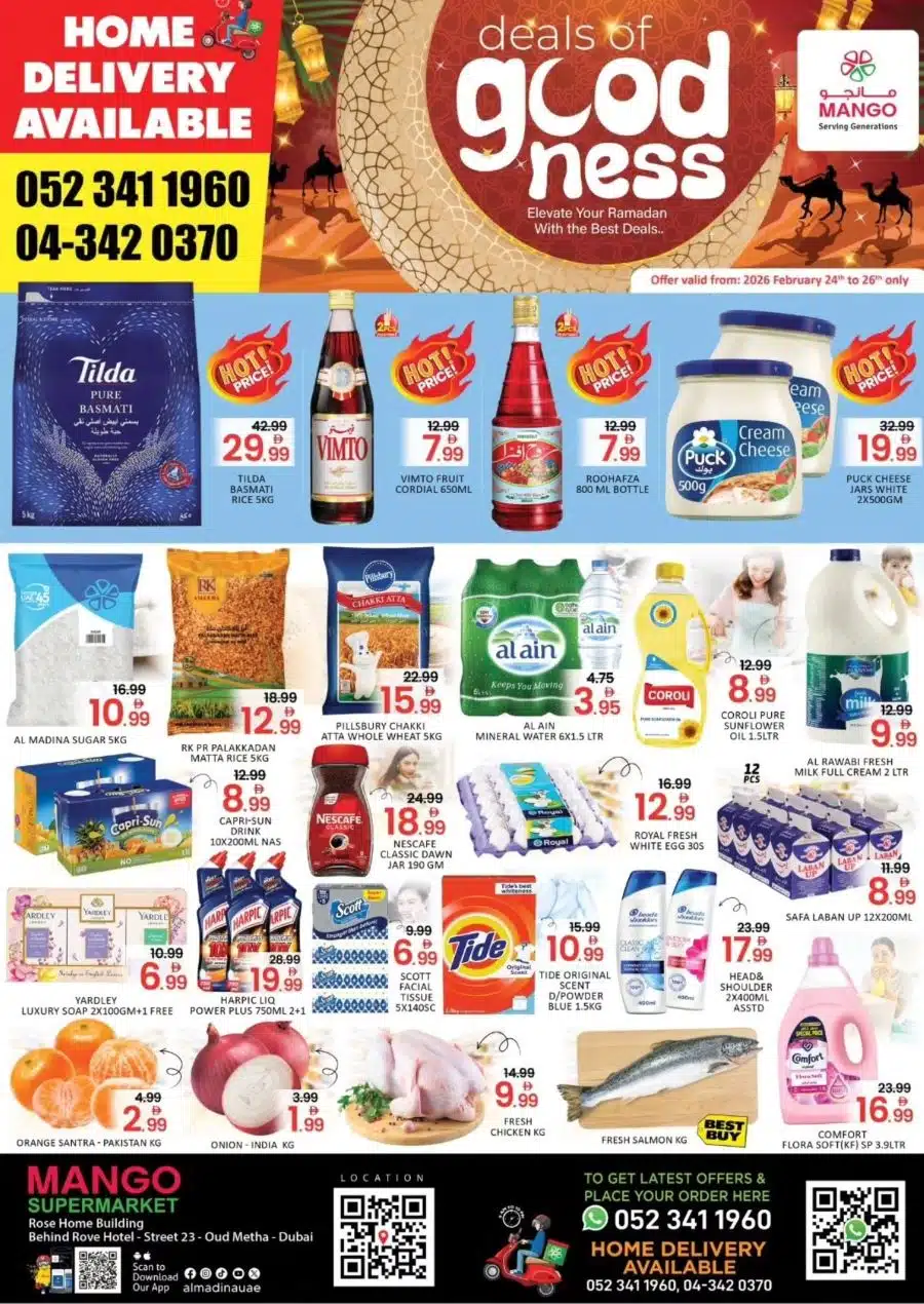 View the latest Mango Supermarket Oud Metha offers; Deals of Goodness promotion, valid from 24 Feb – 26 Feb 2026