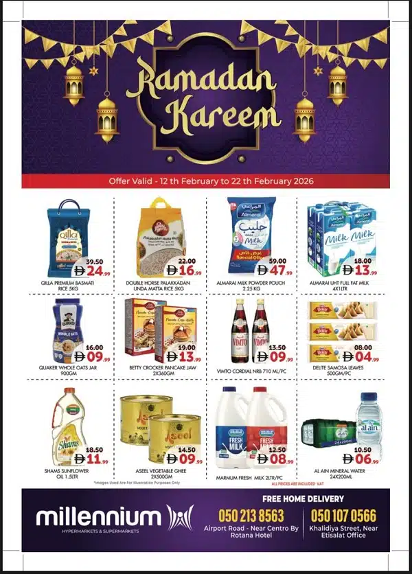View the latest Millennium Hypermarket Promotional leaflet valid from 11 Feb – 22 Feb 2026.