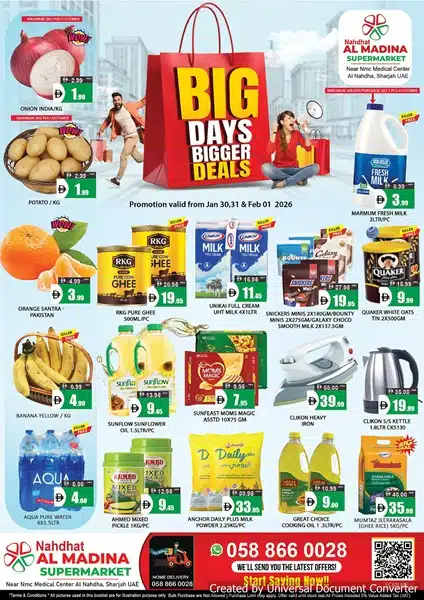 View the latest Nahdhat Al Madina Promotional leaflet valid from 30 Jan to 01 Feb 2026 Nahdhat Al Madina Catalog – Best Weekly Savings ↑ Click to Browse Catalog More about Nahdhat Al Madina UAE – Location & Details Follow our Channels WhatsApp Telegram Facebook Instagram Similar Offers Freshmart Satwa Budget Bonanza February 5, 2026February 5, 2026 Alwan Al Hayath Super Sale February 5, 2026February 5, 2026 Al Hoot Mega Anniversary offer February 4, 2026February 5, 2026 Kerala Hypermarket Ramadan Deals February 5, 2026February 5, 2026 National Hypermarket Festive February February 5, 2026February 5, 2026 Nesto Ras al Khaimah Great Savings February 4, 2026February 5, 2026