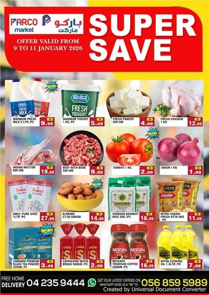 View the latest Parco Hypermarket Promotional leaflet from 09-11 Jan 2026 More about Parco Hypermarket UAE – Location & Details Follow our Channels