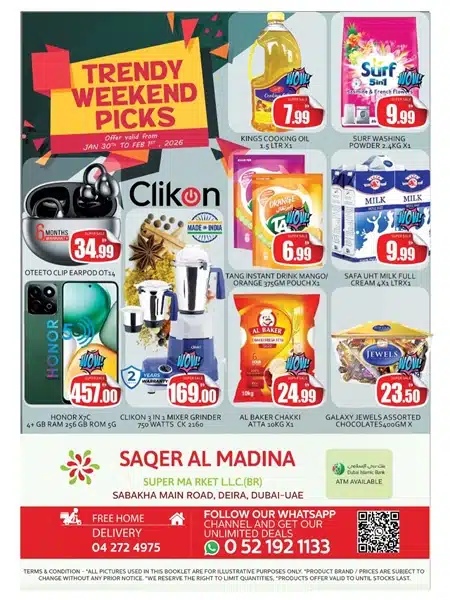 View the latest Saqer Al Madina Supermarket Promotional leaflet valid from 30 Jan to 01 Feb 2026. Saqer Al Madina Supermarket Catalog – Best Weekly Savings ↑ Click to Browse Catalog More about Saqer Al Madina UAE – Location & Details Follow our Channels WhatsApp Telegram Facebook Instagram Similar Offers Freshmart Satwa Budget Bonanza February 5, 2026February 5, 2026 Alwan Al Hayath Super Sale February 5, 2026February 5, 2026 Al Hoot Mega Anniversary offer February 4, 2026February 5, 2026 Kerala Hypermarket Ramadan Deals February 5, 2026February 5, 2026 National Hypermarket Festive February February 5, 2026February 5, 2026 Nesto Ras al Khaimah Great Savings February 4, 2026February 5, 2026
