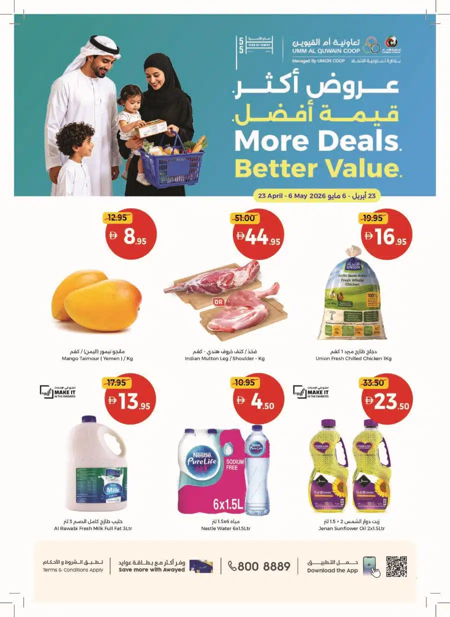 View the latest Umm Al Quwain Coop offers ; More Deals Better Value, valid from 23 April – 06 May 2026. Umm Al Quwain Coop Catalog – Best Weekly Savings ↑ Click to Browse Catalog More about Umm Al Quwain Coop UAE- Location & Details View Similar Leaflets Lulu Hypermarket Safeer Hypermarket Carrefour Follow our Channels WhatsApp Telegram Facebook Instagram